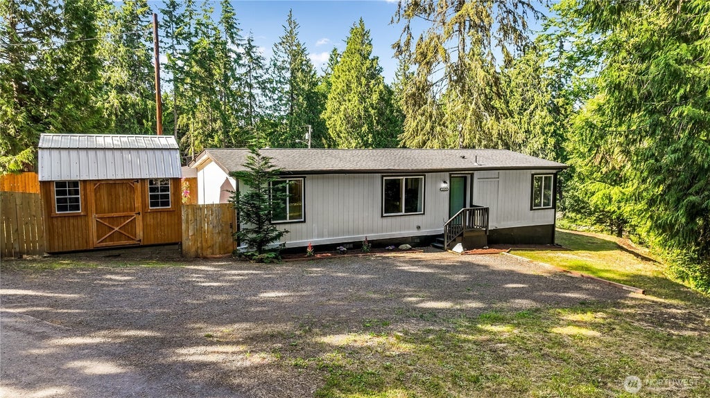 Discover the best-priced home in Miller Bay Estates—packed with updates and charm. Don’t miss your chance to own the most affordable home in this sought-after neighborhood. 3 beds, 2 baths, 1,152 sq ft on a 0.20-acre (8,712 sf) lot, vaulted ceilings and an open layout for a bright, spacious feel. Easy-close cabinets and appliances included. Upgrades include furnace, water heater, double-pane windows, and professionally cleaned carpet to ensure efficiency and comfort. Septic was recently pumped and inspected. Relax in the fenced backyard with a deck and a recently added shed with loft. Community perks include clubhouse, pool, park, and waterfront beach. Close to Kingston Ferry, Bainbridge Ferry, and Bangor Base.