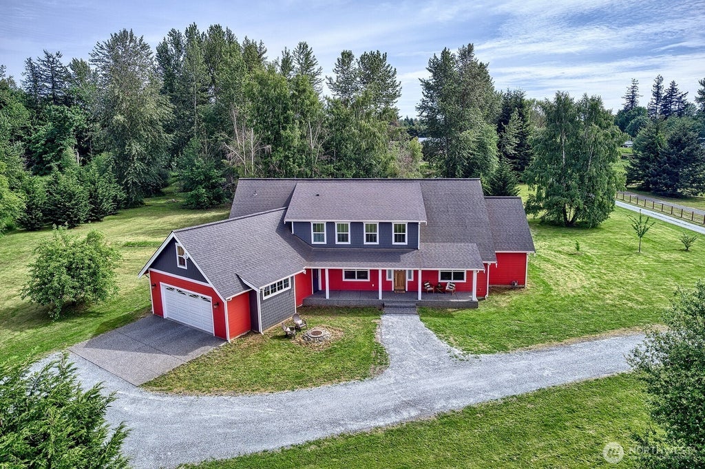 Escape to 936 W Axton where sustainability meets sophistication in a 3,400 sq.ft. custom home on 5 fenced acres in Bellingham! This 3-bed, 2.5-bath retreat (flex room for 4th bed) offers privacy & luxury. Enjoy a fruit orchard, pond, & 2,500 sq.ft. shop w/bay doors & plumbed for water. Solar panels & EV chargers keep costs low; a private well & custom water system ensure efficiency. The vaulted great room w/18’ ceilings stuns, w/main-floor living, gourmet kitchen, & spa-like ensuite. The thoughtful design in every room delights. Only 15 min from Bellingham & Canada, close to everything, but hidden from everyone. Safe, serene, & sustainable...welcome to your private sanctuary. Don't miss your chance to own this North Bellingham masterpiece!