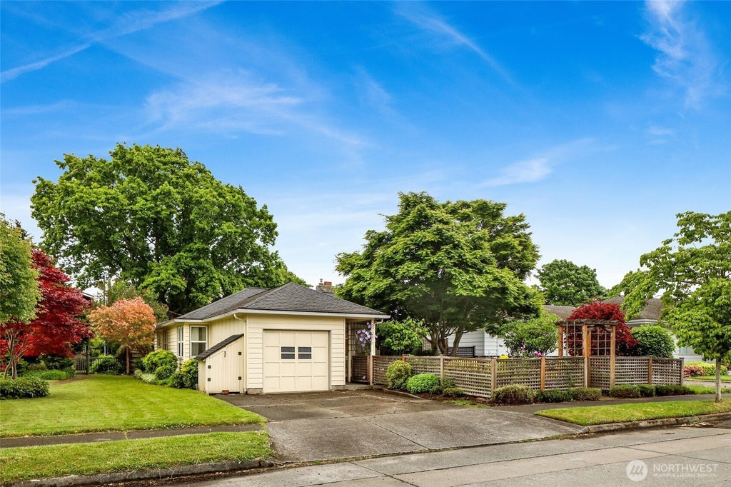 Welcome to this delightful 3-bedroom, 1-bath residence. Step inside to a bright cheerful kitchen surly to inspire culinary creativity and effortless entertaining. The inviting living room features a cozy fireplace, creating a warm calming ambiance ideal for relaxing. Beautiful hardwood flooring flows throughout the home, blending durability with timeless elegance. A convenient single-car garage and a fully fenced backyard ensures privacy and security. The beautiful gardens and private patio offer an ideal setting for outdoor gathering or peaceful mornings savoring your coffee. This charming home combines comfort, style, and functionality in a prime location —