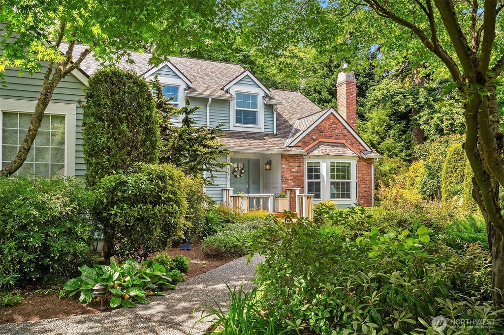Nestled in Kirkland this 4-bed storybook home is set on a lush professionally curated garden. 2-story entry opens to light-filled living rm w/soaring cathedral ceilings & gas FP. Chef’s kitchen is open-concept to spacious family rm anchored by 2nd FP. Featuring white shaker cabs, quartz counters, SS appls, gas cooktop & generous island w/ multiple storage options. Sunny dining nook. Hardwoods & oversized windows offer garden views throughout. Vaulted Primary Suite has ceiling fan, mini-split (heat + A/C), WIC & 5-pc bath w/ skylights. Outdoors escape to gathering areas framed by blooming borders & mature plantings: flagstone patio, deck w/ arbor, benches, raised beds & gardener’s shed. Hot tub. 2-car attached garage. Northshore SD.