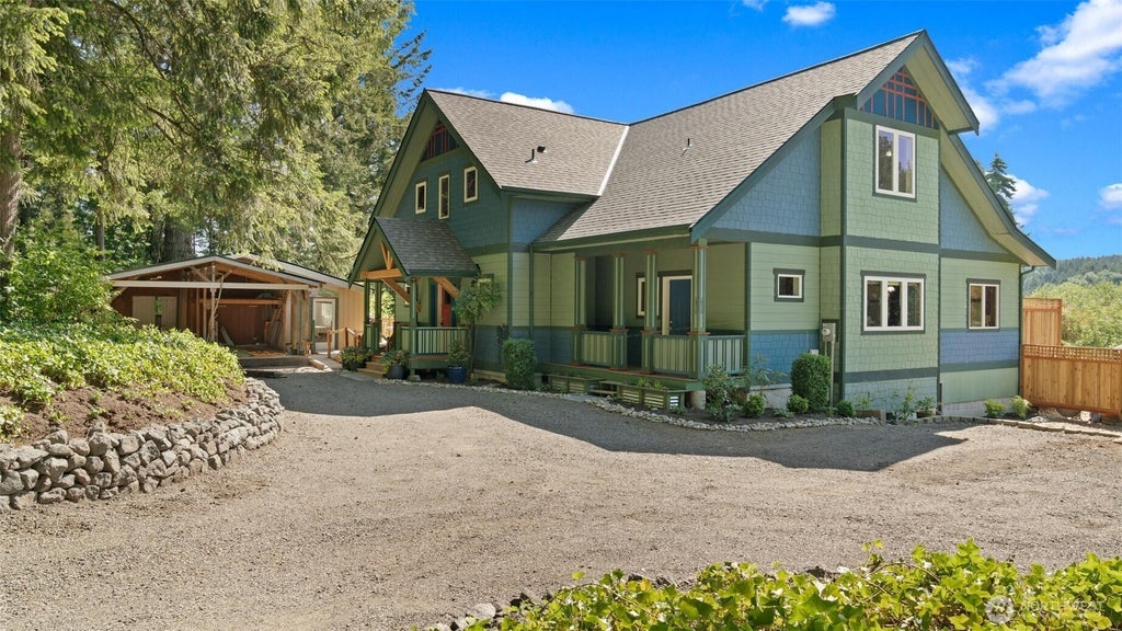 Income Potential Meets Storybook Charm in this beautiful custom-built home, & Guesthouse, lovingly referred to as The Sunset Shire. This property features multiple outbuildings; Small Studio off the Main House, Large Shop w/running water, Popular Short-Term Rental known as The Hobbit House, and a Custom-Built Detached 2-bd ADU w/bonus loft space & attached garage. The sunny 3+ acres offer abundant gardening opportunity and the perfect spot for a future pickleball court! Both homes offer flex/bonus space. This charming property is a must see!