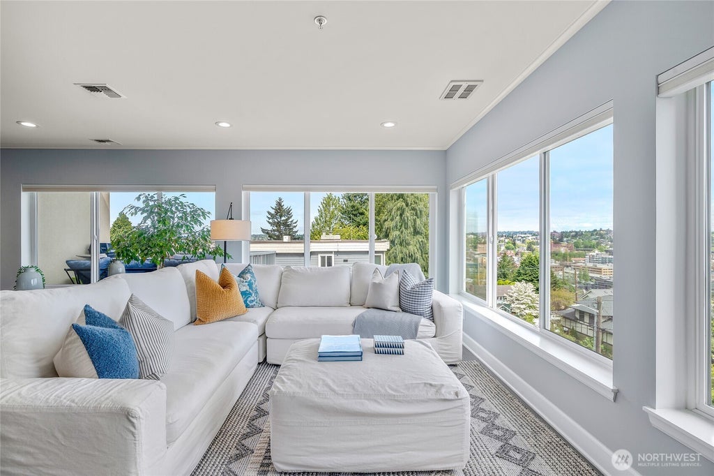 Wake up to breathtaking sunrises & take in spectacular views of Cascades, Lake Union, & Fremont Bridge all from your living room & expansive private outdoor patio. This light-filled, spacious single-level home features hardwood floors, fresh paint, & a chef's kitchen highlighted with generous countertop space & a breakfast bar. The master suite is your personal retreat, complete w/ cozy fireplace, jetted tub & walk-in closet. Given a functional floorplan & rarity of a private 2-car garage, this home is truly a rare find that blends sophisticated elegance with everyday comfort. Situated near the top of Queen Anne & moments from Fremont, you’ll be surrounded by vibrant neighborhoods & a rich array of dining, shopping, & entertainment options.