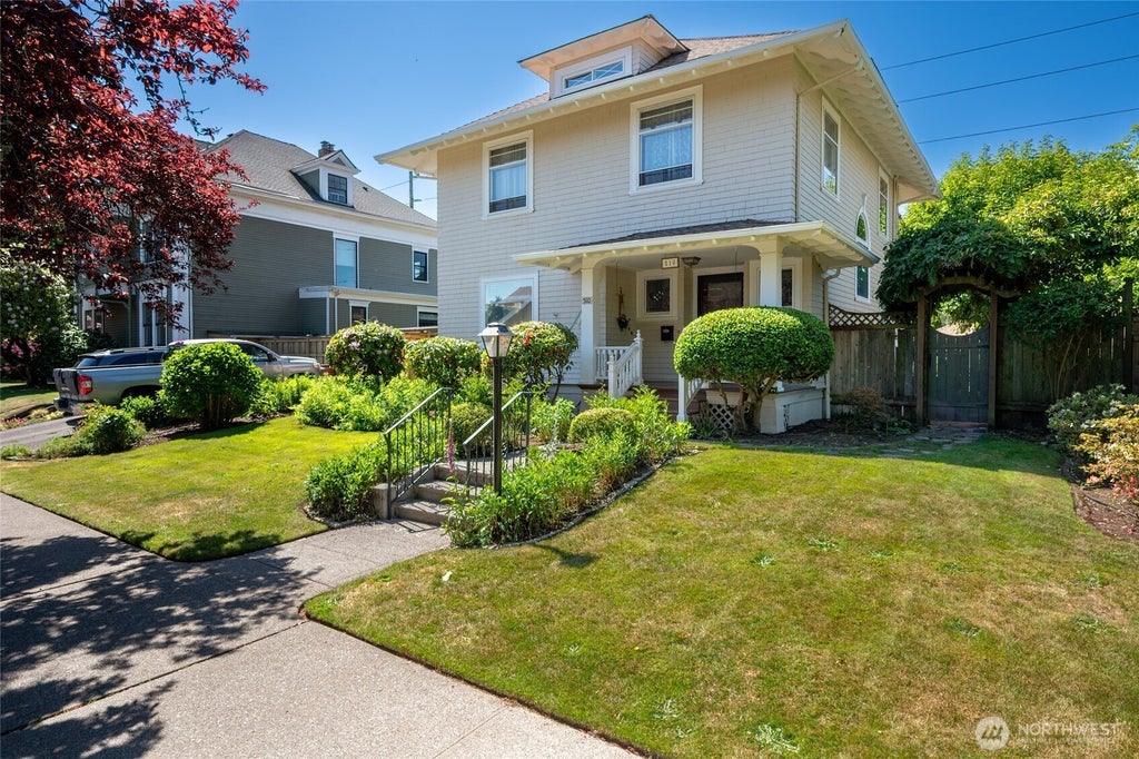Step into timeless charm in this beautifully maintained 1905 home in Tacoma’s historic district. Featuring 5 bedrooms and 3 bathrooms, this gem showcases original hardwood floors, trim & molding. The main level offers a lovely living room, great kitchen, formal dining with French doors, inviting den, and ¾ bath. Upstairs includes 4 bedrooms with full bath; and 3rd floor hosts a 5th bedroom. Basement features a ¾ bath, utility room, and an additional 728 square feet of unfinished space; a MIL-ready blueprint with separate entry ready for you to design and add even more living space to this quality constructed home. Enjoy an English garden, detached garage, poured pad, and gated trailer/boat access plus new roof.