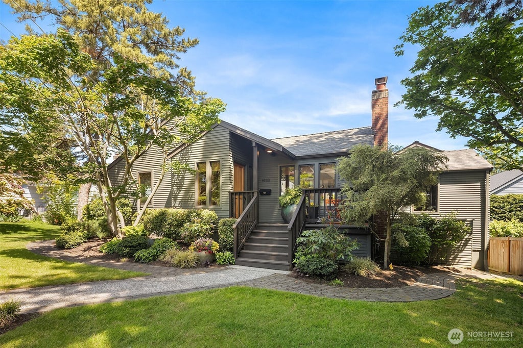 Tucked into the desirable Hawthorne Hills neighborhood, this NW Contemporary gem blends timeless craftsmanship with modern comfort. Stunning millwork throughout with wood-wrapped windows, solid wood doors and mantle, speak to the home's quality. A light-filled kitchen with vaulted ceilings invites sunny mornings. French doors open to a spacious entertaining deck, perfect for al fresco dining. The main level features 3 bedrooms, incl. a primary suite with full bath and 3 closets. A den or office sits just off the living room. Downstairs, high ceilings and a finished bonus room offer potential. Enjoy alley access to the attached garage and a beautifully landscaped yard that completes this serene in-city retreat. BG Trail just down the hill.