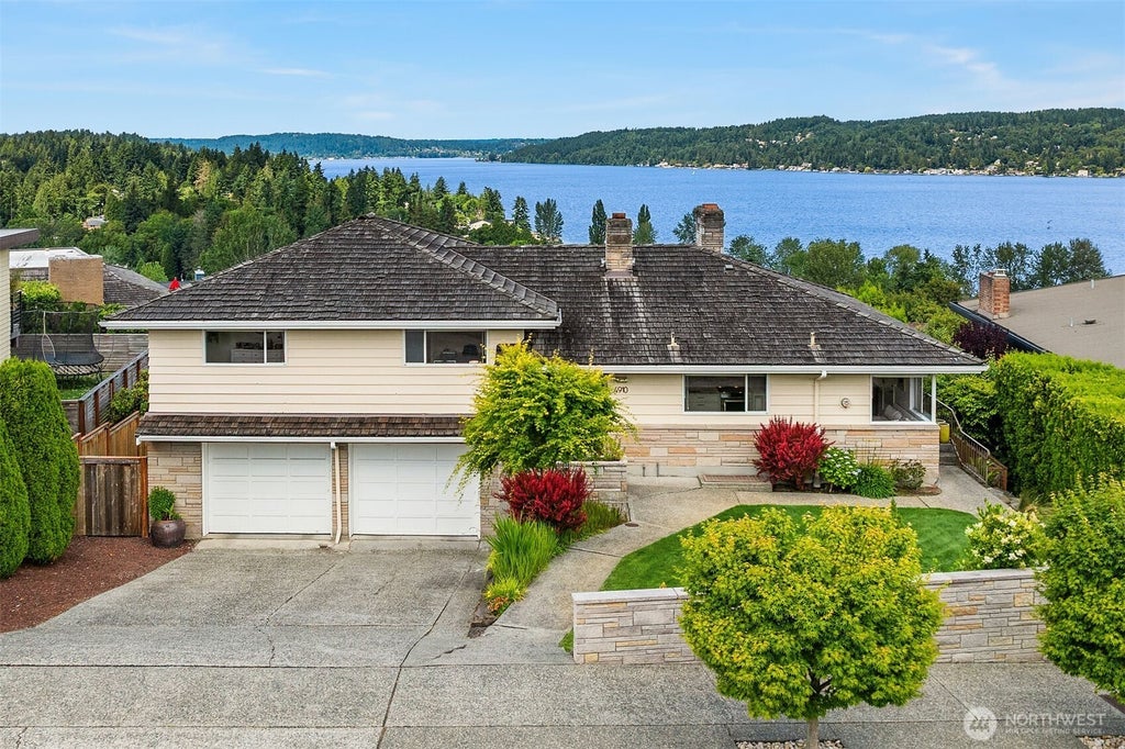 Classic Mid-Century Modern with Panoramic Views in Inverness. Perched above Lk. Washington, this beautifully updated 4-bedroom, 2.5-bath home offers sweeping views of the lake and Cascades. Set on one of Inverness’s most desirable lots, the property boasts an expansive yard - arguably the finest in the neighborhood. Enjoy seamless indoor-outdoor living with a spacious view deck, private hot tub, and protected view covenants. Inside, clean lines and timeless design pair with a refreshed kitchen, airy living spaces, and A/C. Highlights include a 2-car garage with golf cart parking and easy access to top rated hospitals, schools, the Burke-Gilman, and all NE Seattle offers. A rare chance to own a piece of PNW architectural charm.