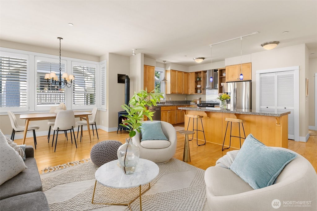 Experience elegant in-town living in this rare end-unit at Madrone Village. This 2-bed, 2-bath condo offers single-level ease with elevator access and no shared walls for added privacy. The sunlit great room features 9' ceilings, wood floors, and a cozy propane stove. The kitchen shines with a large island, stainless appliances, and craftsman-style cabinetry. Enjoy a secure garage, private storage, and a generous balcony. Tucked in a peaceful location yet just steps from Winslow’s vibrant shops, dining, marina, and ferry.