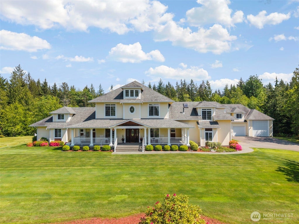 Extraordinary 3 Bdrm Custom-built hm w/primary bdrm on main floor. The 2.28 Acres blends luxurious living in a secluded yet centrally located setting w/Olympic Mtn views. Design features incl granite countertops, radiant heating, engineered hardwood floors. Vaulted ceilings w/intricate details add elegance & dimension throughout. Gourmet kitchen, Butler's pantry & outdoor kitchen offer expansive areas for entertaining. Covered front & back porches. Fully fenced backyard oasis w/hot tub & custom fire pit area. Massive detached garage w/shop area & RV bay & 692 sq ft fully finished upstairs rec rm complete w/bath & loads of add'l storage, not incl in total home sq ft. Fully automatic emergency generator ensures peace of mind in any season.