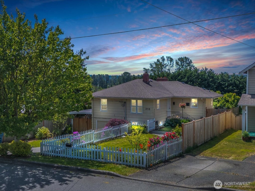 Downtown Snohomish Charmer featuring vintage designs. Step into timeless charm and modern comfort in the beautifully maintained 1950s home. 2 Bed, 3rd bed/bonus room and 1.75 baths. You will love the warm hardwood floors, new carpet and interior paint, stylishly remodeled bathrooms that give this home a fresh modern feel while keeping its original mid century vibe. Fantastic natural light flows into the spacious living room with wood burning fireplace. Vintage kitchen with modern appliances. Two large bedrooms upstairs and an extra large bedroom downstairs offers functional space. Don't miss the large storage areas and the extra large laundry space. One car garage and extra covered parking. Fully fenced yard with white picket fence.