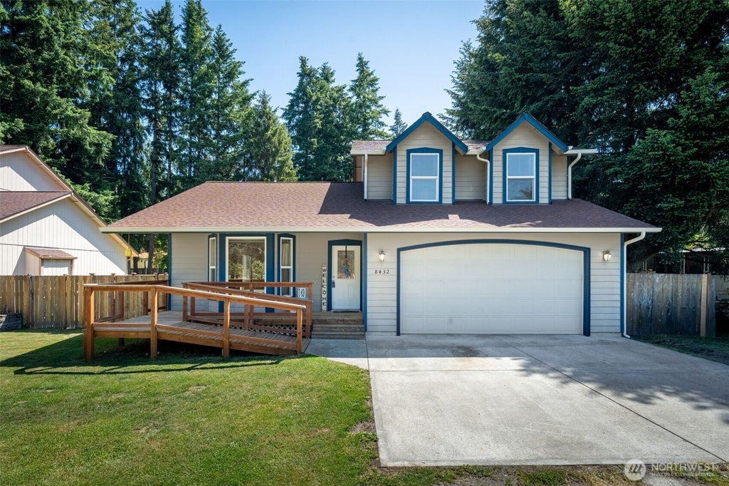 At this price you will have money left for personal touches. The kitchen features plenty of counter space and an eating bar with room for 3 seats. Kitchen opens to the living room / dining room with vaulted ceilings. Step outside the slider to a large deck and fully fenced backyard....perfect for holidays and BBQ's. There is a main floor office that looks out over the backyard just past the kitchen. The three upstairs bedrooms are all good sized. Covered front porch has ramp or step access and is perfect for morning coffee. Nisqually Pines offers a community pool, clubhouse, parks, and a relaxing private beach on the Nisqually River. Home is located within 20 minutes of JBLM East Gate with plenty of neighborhood shopping and conveniences.