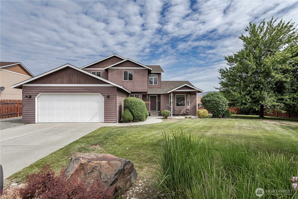 Come see this beautifully maintained home on a large lot (.26 acres). Four bedrooms/3+ baths. At the end of a quiet cul-de-sac, the home features vaulted ceilings, formal living room, 4th bedroom on the main floor with a full bath nearby. Great for entertaining the family room is open to the dining area and kitchen. Propane fireplace in the family room. The primary suite is huge with a 5 piece bathroom and large walk-in closet. One of the other upstairs bedrooms is also quite large. Two patios and a large yard for relaxing with a view of the foothills. Oversized garage with lots of room for workbench and storage. Lots of room for RV or boat parking, raised garden beds. Outlets in the eaves for heat cables and holiday lights. Newer heat pump