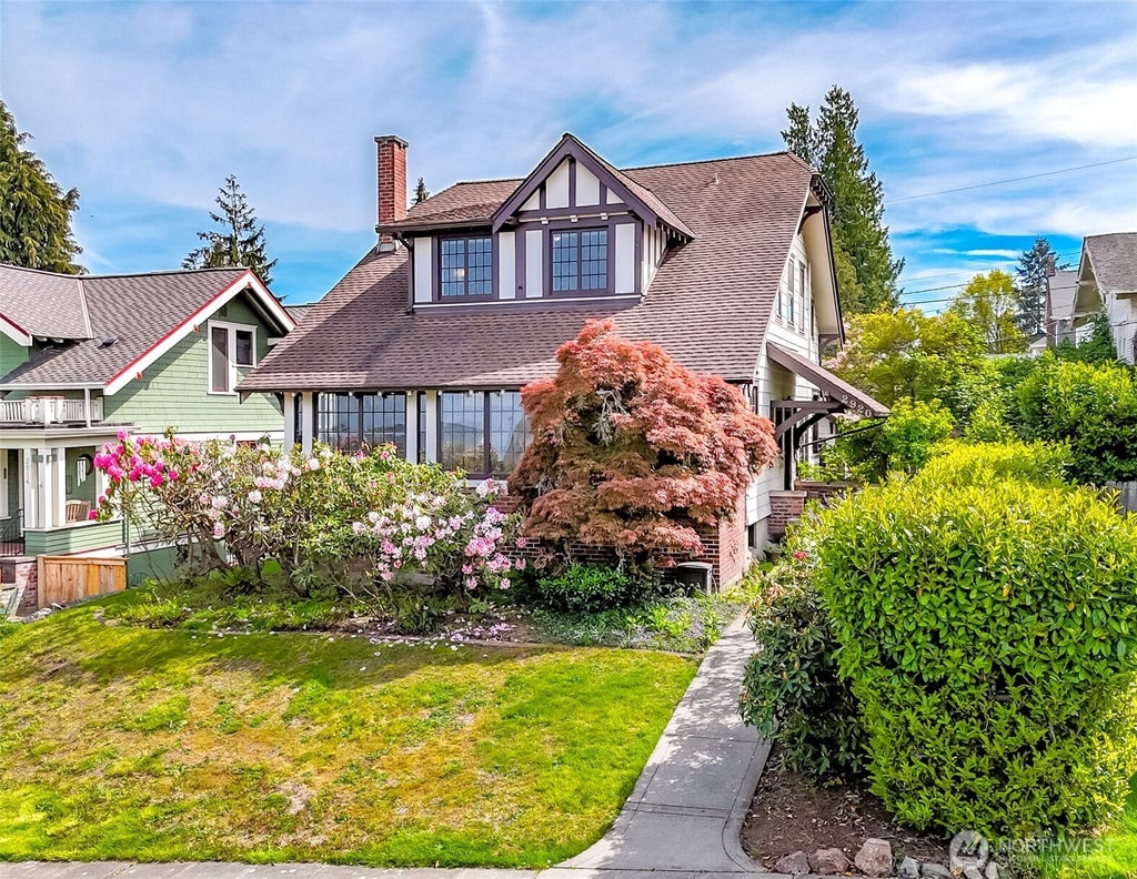 Wonderful North Tacoma Craftsman home with views of Puget Sound! Beautiful woodworking throughout main floor including beamed ceilings, paneled walls, and HW floors! Spacious Living Rm has gas FP. Sunroom is great for relaxing and viewing the bay and NE Tacoma. Beautiful Dining Rm with built-in storage and gorgeous antique Chandelier!! Kitchen has a breakfast nook and is adjacent to the Mud Room. Upstairs has a den/office and 3 bedrooms with walk-in closets. Partially finished basement has a bonus/rec room with fireplace, Utility Rm, and workshop/storage areas. Laundry Chute on every level! Fenced backyard has a patio, deck, & one care detached Garage with alley access for off street parking. Don't miss out on this beautiful, classic home!!