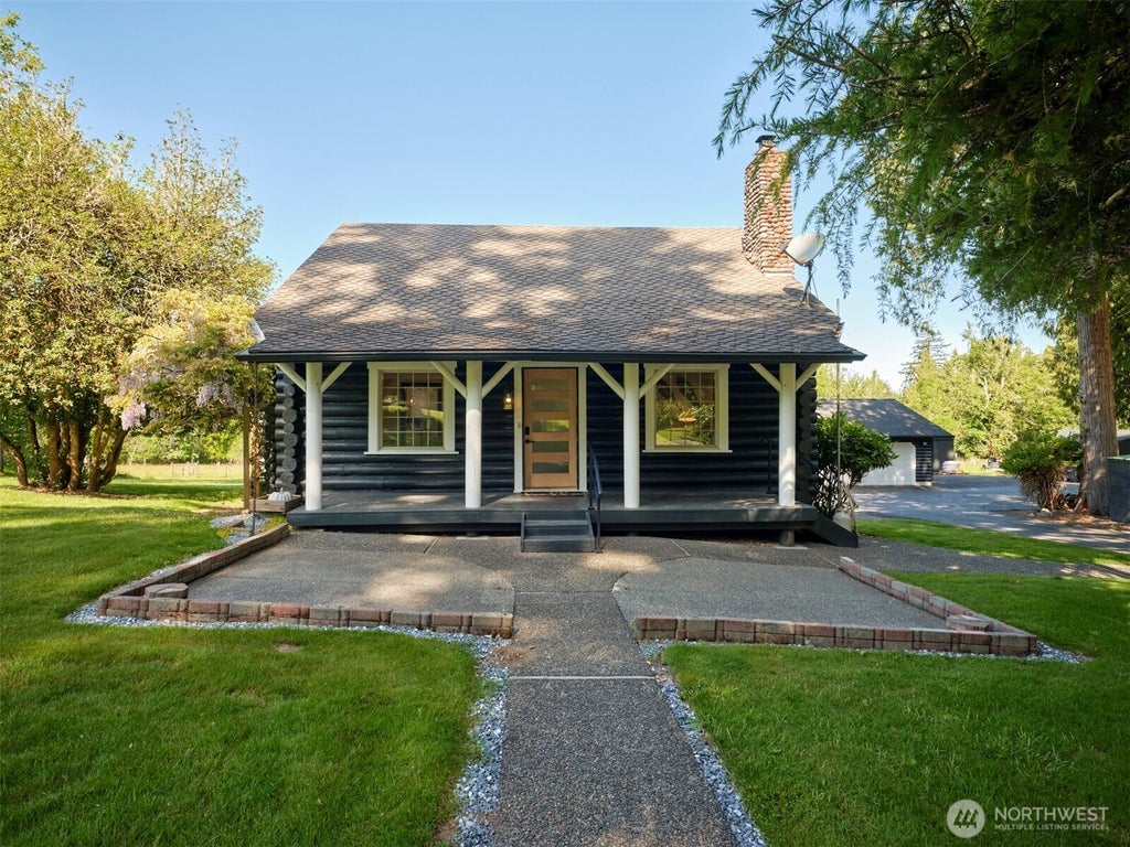 Enchanting! Creek-side cabin straight out of a dream! Welcoming covered front porch ushers you in. Big hearth stone fireplace in living rm. Kitchen is light abundant w/nook to enjoy morning coffee. Utility/mud porch+pantry. Primary on main. Cute as a button bedrms upstairs w/1/2 bath. New LVP flooring on main lvl & Doug Fir flrs upstairs. Clean & dry unfinished bsmt; great for extra storage. Seller is open to including furnishings. Paved circular drive. Oversized 2 bay 26'x 32' stick-built garage (ADU Potential!), 16'x24' shop, 16'x12' covered storage & 3-stall 36'x30' barn. Comcast internet. Pasture area so bring your animals. Sprinkler system. Fruit trees & room to garden. Super quiet country road. Creek runs right through the property!