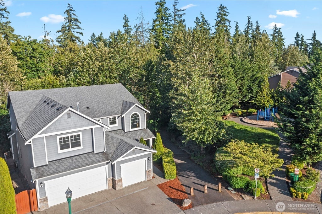 Live large in this beautifully maintained home nestled in a peaceful, park-like setting. Step inside to soaring ceilings on the main level featuring formal living & dining rooms, updated kitchen w/ breakfast nook & island seating flowing into a cozy family room w/ gas fireplace. Upstairs, enjoy a spacious primary suite w/ ensuite bath & dual walk-in closets, plus two additional bedrooms & large bonus room. Daylight basement w/ separate entrance provides flexibility w/ kitchen, oversized living/bedroom area & half bath—ideal for potential multigenerational living. Large fenced yard w/ firepit area backs to land that won’t be developed. Neighborhood amenities include walking trails & playground. A perfect blend of privacy & community living!