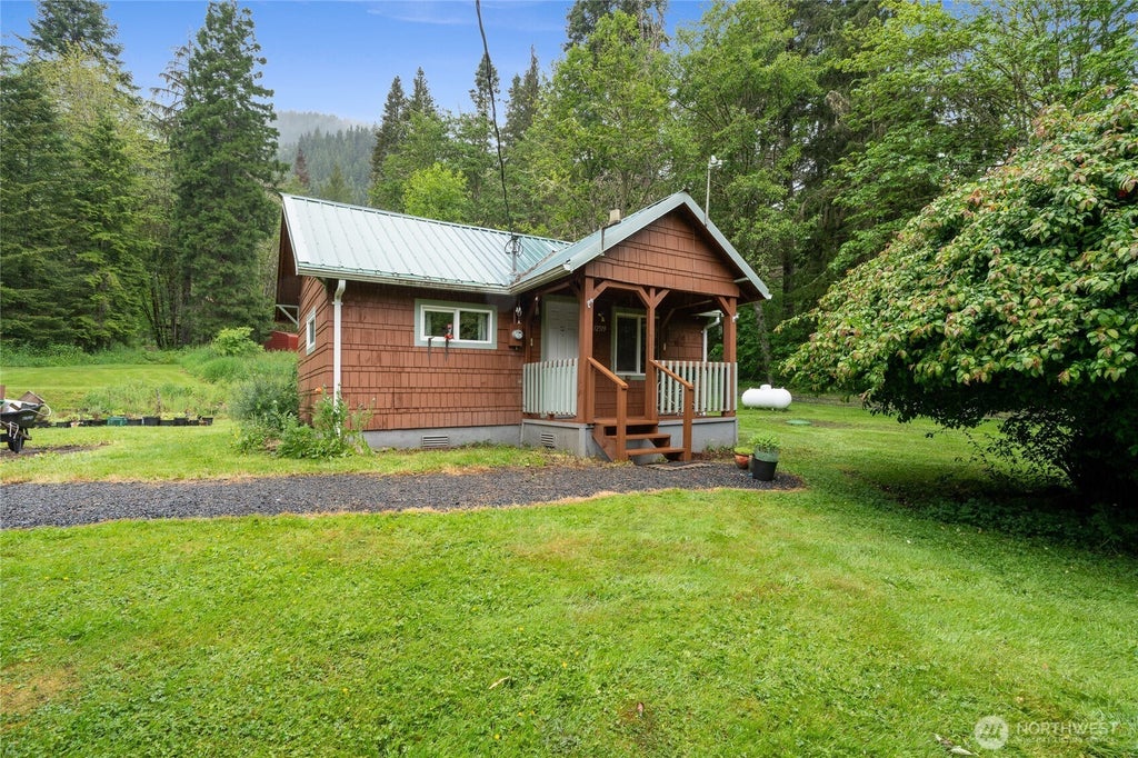 Welcome home to your mountain getaway, whether you're looking for a relaxing weekend retreat or full time living this home is the perfect spot. Situated on 1 acre right off Hwy 706, just minutes from Mount Rainier National Park entrance. This property features an open layout with 728 sqft of living space, 2 bedrooms, 1 large bathroom / utility room with an instant hot water heater. Exterior of the home features a large yard with mature landscaping and fruit trees, and bunkhouse for additional sleeping area that is fully finished with its own 50 amp power source. This home is a must see.