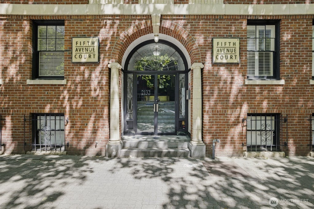 Historic Belltown Charm Meets Modern Convenience. Light-filled corner unit in the iconic Fifth Ave Court. This home offers rare privacy and function with a true 1-bedroom layout and charming French doors. This classic blends timeless architectural details with modern updates—hardwood floors, large windows, and an efficient ¾ bath. Perfect for long-term living or investment in a no rental cap, short-term rental approved building. Enjoy peek city views and unbeatable walkability to Pike Place, Seattle Center, Amazon HQ, and transit. HOA covers most utilities. Great value in a vibrant, fast-growing urban hub!