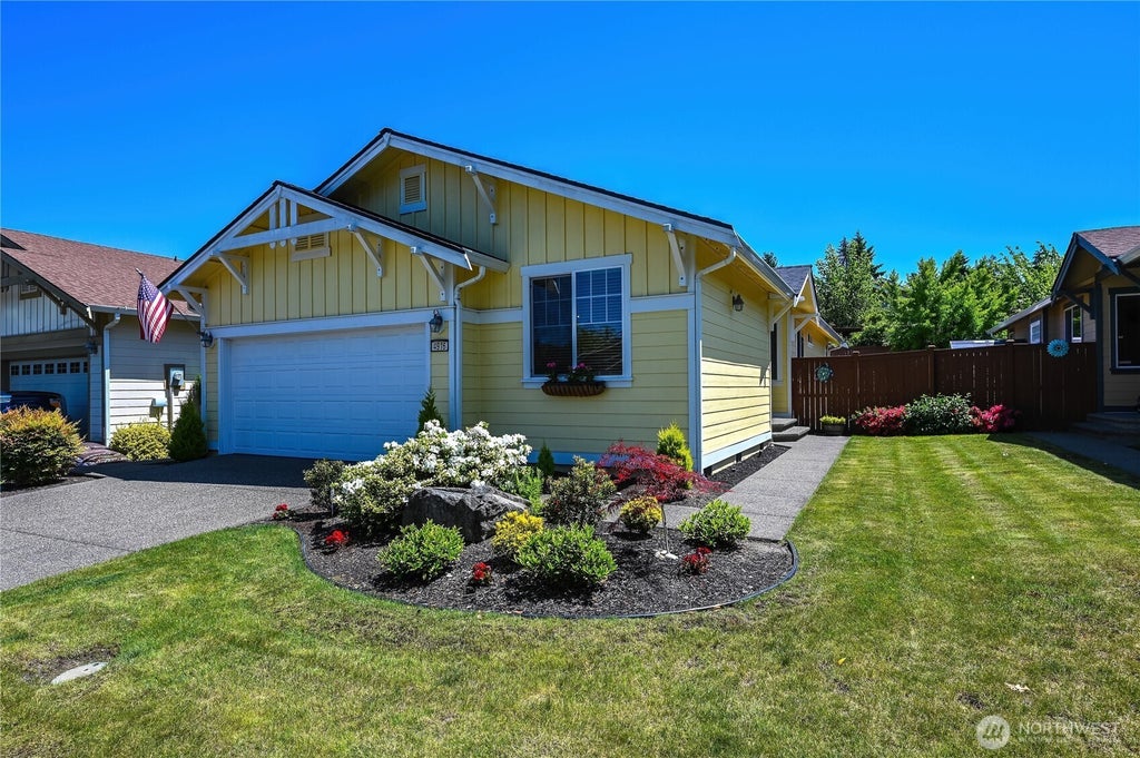Welcome to Jubilee—Lacey’s premier 55+ community! This light-filled 1,423 sq ft Southpoint floor plan invites you to relax and enjoy life. With 2 bedrooms and 1.75 baths, this home offers comfort and style. The spacious primary suite is a true retreat, complete with an en-suite bath. Cook and entertain in the updated kitchen featuring quartz countertops, island, and newer LVP flooring that flows throughout. A cozy gas fireplace and built-in entertainment center anchor the living space. Step outside to your private, low-maintenance yard with fountain, electric awning, and full fencing. Newer furnace, roof & more. HOA maintains front yard (inc. sprinkler system), includes club house, community center, pool, spa, fitness center, & library.