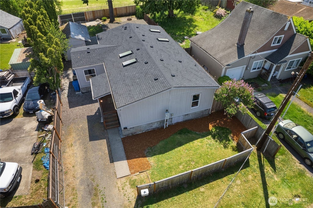 COMPLETE REMODEL IN 2023! New composite roof, LVP flooring and heat pump A/C! Stunning kitchen w/ new cabinets, coffee bar, stainless appliances & hood + a breakfast nook with tons of natural light on one side & dining room table space on the other! Updated electrical, plumbing, lighting, & bath fixtures. Primary suite w/ a dual-head, tiled walk-in shower + a connected bonus room perfect for a massive walk-in closet or make it a private office/hobby space. Four skylights flood the home with natural light. Outside, a fully fenced yard w/ covered wooden back porch & concrete landing pad, large workshop, & gated alley access—ideal for boat/RV storage by moving the raised garden beds. No HOA and move-in ready!