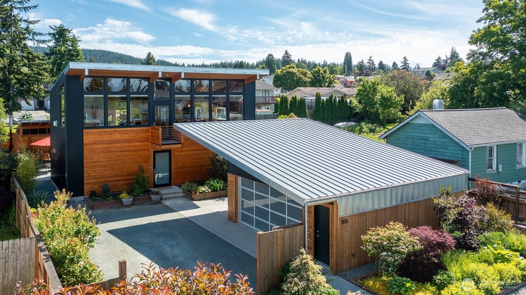 Expertly designed by an award-winning local architectural firm, this refined 3-bedroom home showcases timeless craftsmanship and intentional design. Rich with eco-conscious materials, including local timbers, knot shiplap inside and out & zero to low-VOC finishes, every detail reflects quality. Walls of windows capture sweeping territorial bay & mountain views, filling the open living spaces with natural light. Expansive open living layout with gourmet kitchen featuring custom cabinetry, quartz surfaces, grand island, dining area & seamless flow to the back deck down to lower yard. Outdoors, enjoy artfully curated landscaping, raised garden beds, lush lawn, paver patio & covered area perfect for relaxing or gathering plus detached garage.