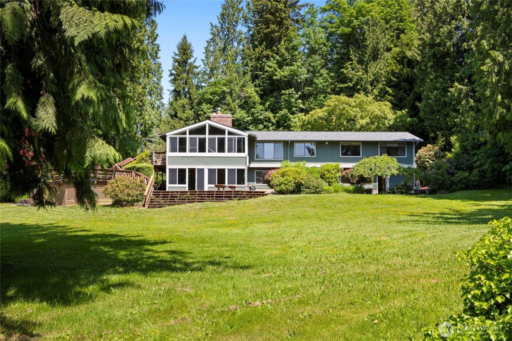 Get A Whole Lot More at This Updated Snohomish Estate With a View! Home w/ ADU on 6.84 ac. Complete remodel over 3 yrs. Main flr is 3 bed/2 bath, large primary suite w/ en suite bath & laundry. Sitting rm w/ valley view & open living rm. Sun rm & decks off the living rm look out on Snohomish River Valley. Kitchen w/ custom cherry cabs. Stairs down to bonus walkout living rm, storage rm, 2nd laundry & bedroom. Heat/AC for main w/ heat pump. Private drive w/ separate parking & path to downstairs unit. ADU is a permitted 1 bed/1 bath unit w/ kitchen, laundry & living rm. Income potential w/ private entry! New roof, premium wood flrs. Grounds incl gardens, 2 car garage w/dbl carport, greenhouse, sheds. Ideal location w/ easy access to HWY 2/522