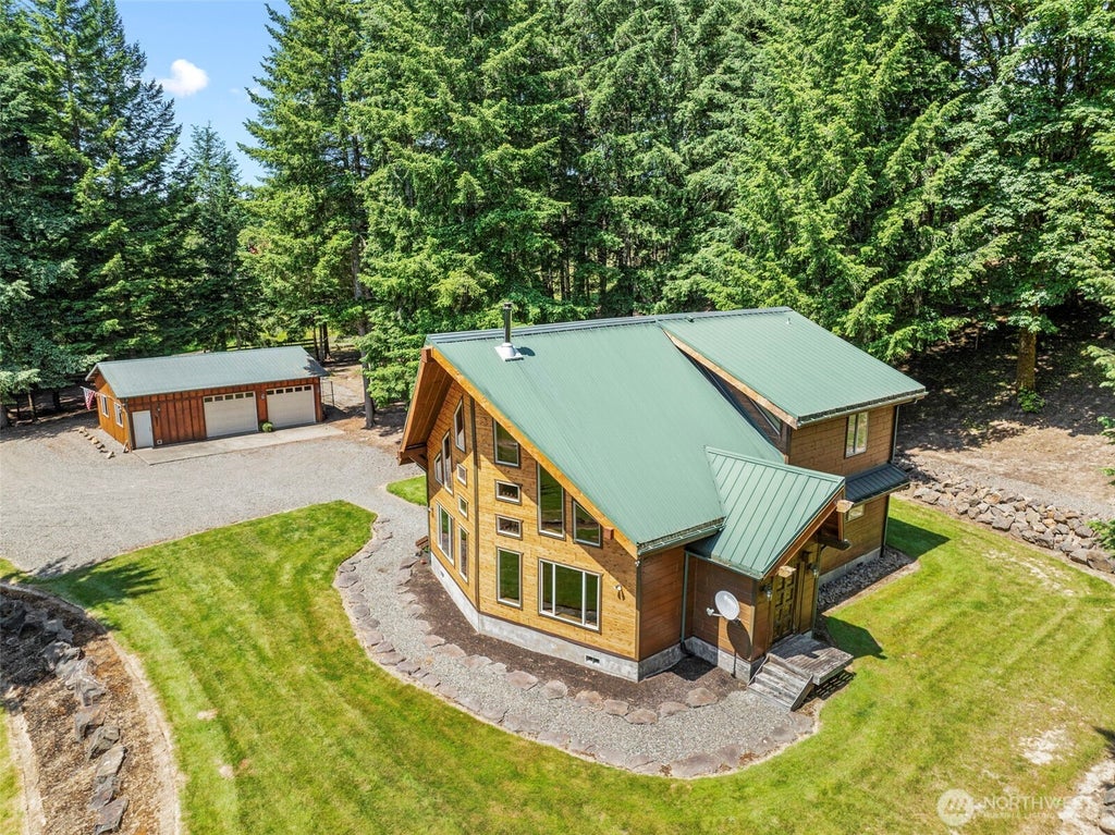 This Beautiful Lodge style home is ready for you! 2 parcels totaling 3.71 Acres of land feels like a park! Detached 864' garage / shop. This is the one you have been waiting for! 3 Bedrooms, Primary on the MAIN W Private Bath, 2 Beds up with Full Bath, and a loft space! So private and lovely.. This home has been well cared for! Step inside and get cozy! Vaulted Celings.. Newer HVAC.. AC included for those hot summer days! Stay toasty warm in the winter with the wood burning fire place. This homes offers everything you are looking for. Located just minutes to I5 for an easy commute but feels like a world away! So Private. Great home with tons of space for everyone!! Home has been well maintained by current owner. NO HOA! Move in ready!