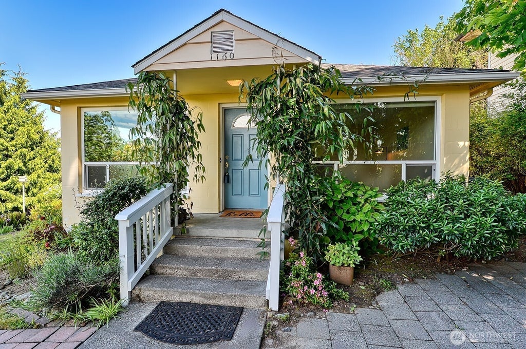 Discover this 3+ bed, 2.25-bath mid-century gem on a Bellingham hillside in the coveted Puget neighborhood! This 1590 sq.ft. home offers partial water & city views, perfect for watching fireworks over the bay. Sculpted flower beds, fully fenced back yard & garden space create a serene retreat. Home features main floor living upstairs with hardwood floors, views, and charming built-ins. Partially finished 1000 sq ft basement w/separate entrance, kitchen, ¾ bath, Potential 4th bedroom, & living room. Ideal for guests, MIL suite, or rental income. An EV charger adds eco-friendly convenience. Nestled in a quiet, established community with top schools nearby. This home blends charm, views & the perfect location. Prepare to be delighted!