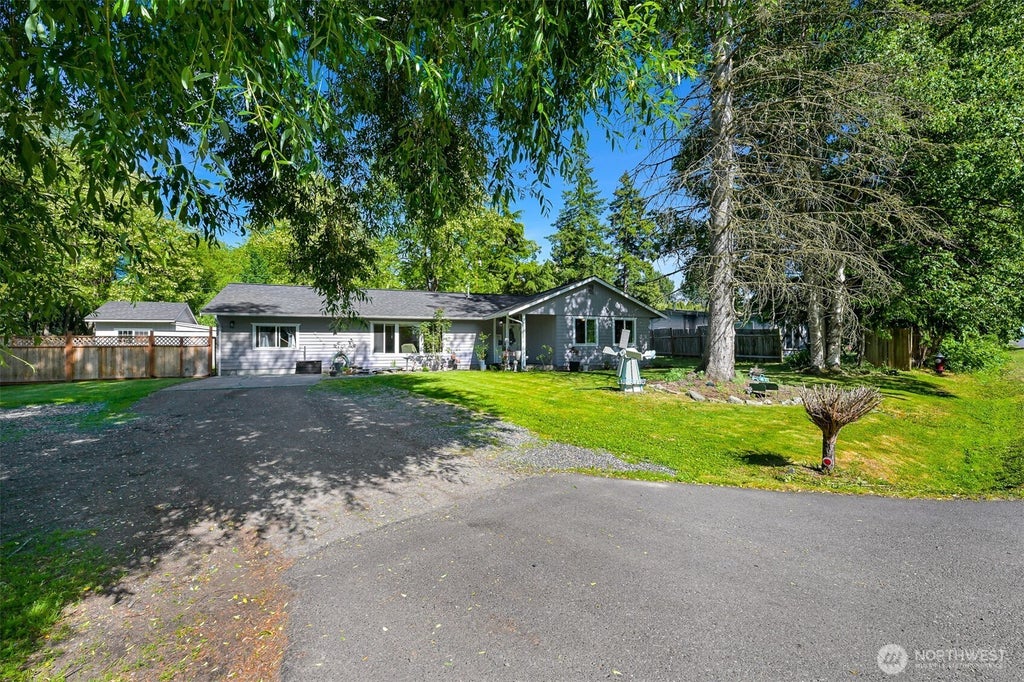 Charming 3BD/1.75BA home with 1,822 sqft of comfortable living space. Features include original hardwood floors, ceiling fans in all bedrooms, deep closets, and a cozy gas fireplace. Kitchen offers stainless steel appliances and flows into the dining area with French doors leading to a fully fenced backyard—perfect for entertaining or relaxing. Includes a dedicated dog run, insulated outbuilding, and alley access with extra parking. Potential ADU or separate detached office. Newer roof and windows within last 5 years. Conveniently located minutes from I-5, Costco, Fred Meyer, and more!