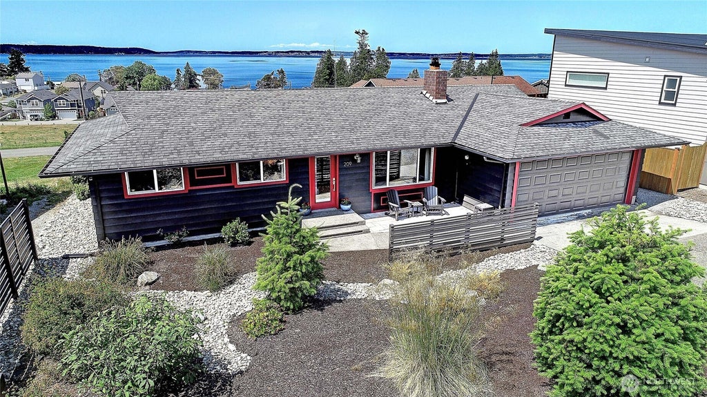 Gorgeous Madrona Beach View Home, Easy Level Single-Floor Living with Open Layout and Fenced New Yard! First time on market, this 3 bedroom/2 bath home features Engineered Bamboo flooring, gas fireplace, and a finished 2-car garage. Stainless Steel newer appliances, lovely view kitchen, air-conditioning with heat pump. Electric vehicle charging, high-speed broadband, and hardscaped front yard for low-maintenance. Private Back Patio w/ Space to Play. Brand-new Envirotek 3-bd septic, wonderful water system and great, quiet community just a few blocks from an incredible private shoreline on Puget Sound's Saratoga Passage. Beachcomb, kayak, crab, picnics and whale watching. Welcome Home!