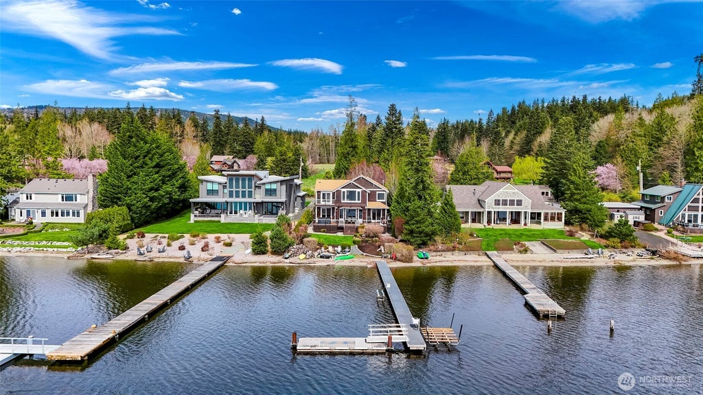 Stunning no-bank Lake Whatcom waterfront home w/ 52 ft of prime frontage and a sandy beach. This 2,694 sqft NW contemporary sits on a beautifully landscaped 10,000 sqft lot. Home features 4 bedrooms, 2.5 baths and radiant heat. The open main floor offers a chef’s kitchen with granite counters, stainless steel appliances (Viking range), walk-in pantry, and an office/bedroom. Upstairs: new carpet w/ 3 bedrooms, including a spacious primary suite w/ private deck, large bath, & walk-in closet. Ironwood deck, newer roof, windows, paint and gutters. Property also boasts 12KW Natural Gas Generator W/Auto Switch Sun Stream 4K Boat Lift, synthetic dock & 2-car garage with extra parking. Minutes drive from breathtaking trail system.