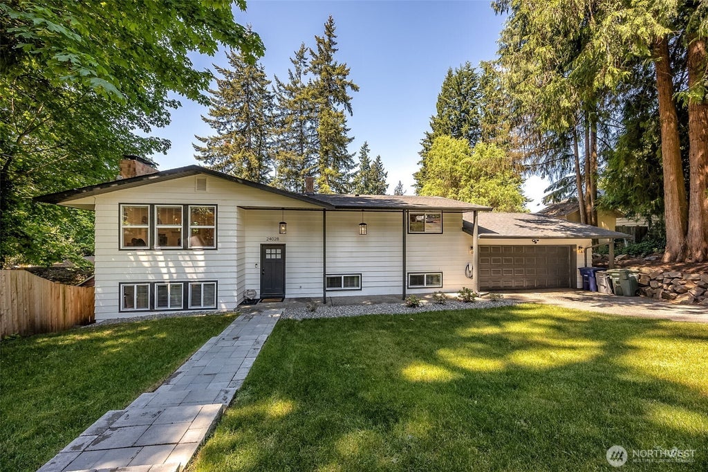 Rare Bothell gem just minutes from Saint Edward State Park offers privacy and luxury on a secluded 0.3-acre lot with dual street access. This 2,512 sq ft home features high-end renovations, an open floor plan, quartz countertops, and stainless steel appliances. The upstairs primary suite includes an ensuite bath and walk-in closet, while a spacious downstairs bedroom with dual closets offers flexible space for guests or a home office. Two additional oversized bedrooms add versatility. Enjoy a pro-installed pickleball court, sport hoop, new furnace and A/C. Recent updates include a new roof, windows, and more. Pro-installed Tesla charger & 2 car garage. Steps from Shelton View Forest and close to Northshore schools, Microsoft, and AWS.