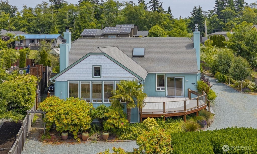 Welcome to Eventide Cottage, where you can enjoy true coastal living in a beautiful, light filled home. The large view deck and wall of windows in the living room give you views of the Olympic Mountains and Puget Sound. Watch the ships sail past and the ferry make its way to port. The gleaming hardwood floors throughout the main floor invite you in, with the vast majority of the home on one level. There are numerous flexible spaces, including a very private bedroom w/ its own bathroom over the garage. The primary bedroom suite features a fireplace, ensuite bathroom, walk in closet and access to a private deck. The back deck is wired for a hot tub. The rear of the property is fully fenced, and there is parking for an RV, boat, or both!