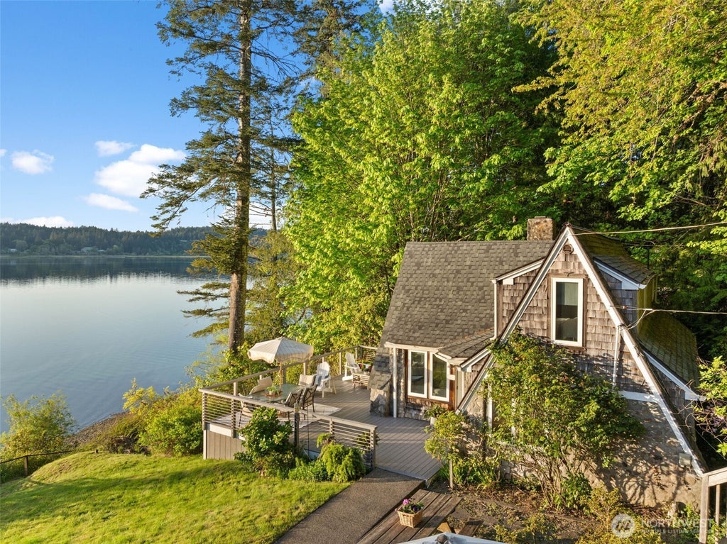 Secluded S. Hood Canal Waterfront Retreat. Discover the perfect blend of charm, privacy, & convenience just 1 mile from Belfair. This iconic 1938 stone beach cottage offers 114' of low-bank waterfront along the warm, swimmable waters of Hood Canal. Ideal for kayaking, paddleboarding, or taking in the panoramic Olympic Mountain views from the spacious Trex deck. Tucked away on a tree-lined lot, you'll enjoy seclusion, ample parking, & circular drive. The detached guest studio, w/ kitchen, utilities, & private deck, makes room for all your guests or rental income. Additional features include toy storage, bulkhead, &cozy fire pit. A truly special retreat in a coveted location, this is the legendary Hood Canal getaway you’ve been waiting for!