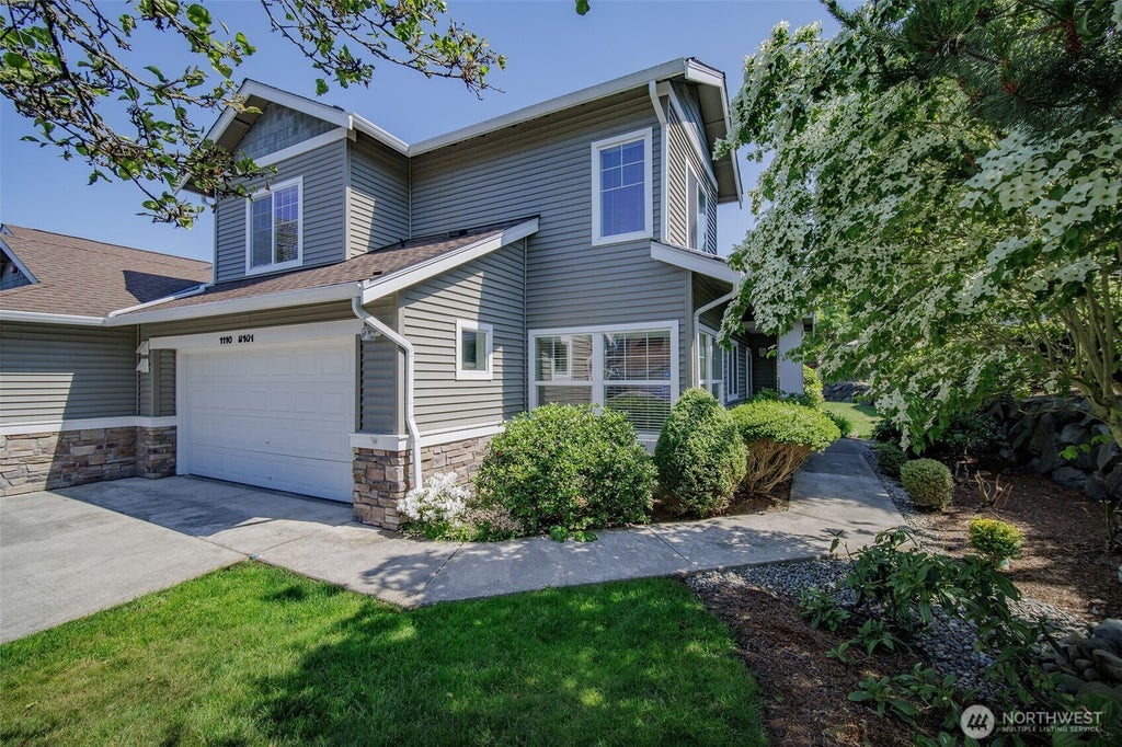Stop and take a moment to listen to the birdsong. Appreciate the blooming perennials & dogwood tree. And always look for Mt. Rainier. This Siena at Lakeland Hills townhome offers tranquility & more. Main floor primary bedroom with a view of the garden, boasts an ensuite bath & walk-in closet. The bright kitchen & breakfast nook enhance your morning coffee with granite counters, hardwood floors & cabinets & clever storage. Upstairs find 2 large bedrooms, 3/4 bath, plus a loft den. Outdoor fenced patio looks out over the community park & putting green. Take a lovely stroll to the park, schools, shops & restaurants (or use the nearby bus!). Plus a 2-car garage & extra long driveway. Convenient HOA covers landscaping as well as water & sewer.