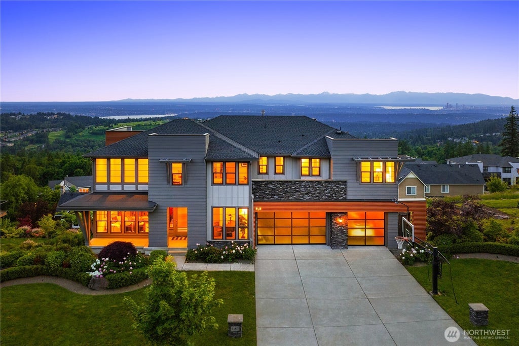 Perched atop Cougar Mountain in Bellevue’s premier Belvedere community by Toll Brothers, this luxury home offers spectacular panoramic views of Seattle, Puget Sound, the Olympic Mountains, and Newcastle Golf Club. Soaring ceilings, rich hardwoods, and expansive windows flood the home with natural light. The gourmet kitchen features high-end appliances, quartz countertops, and an oversized island ideal for entertaining. Enjoy seamless indoor-outdoor living with a spacious view deck and private backyard. The finished lower level includes a theater room and flexible space for guests or recreation. Located near top-rated Issaquah schools, this home blends beauty, comfort, and convenience.