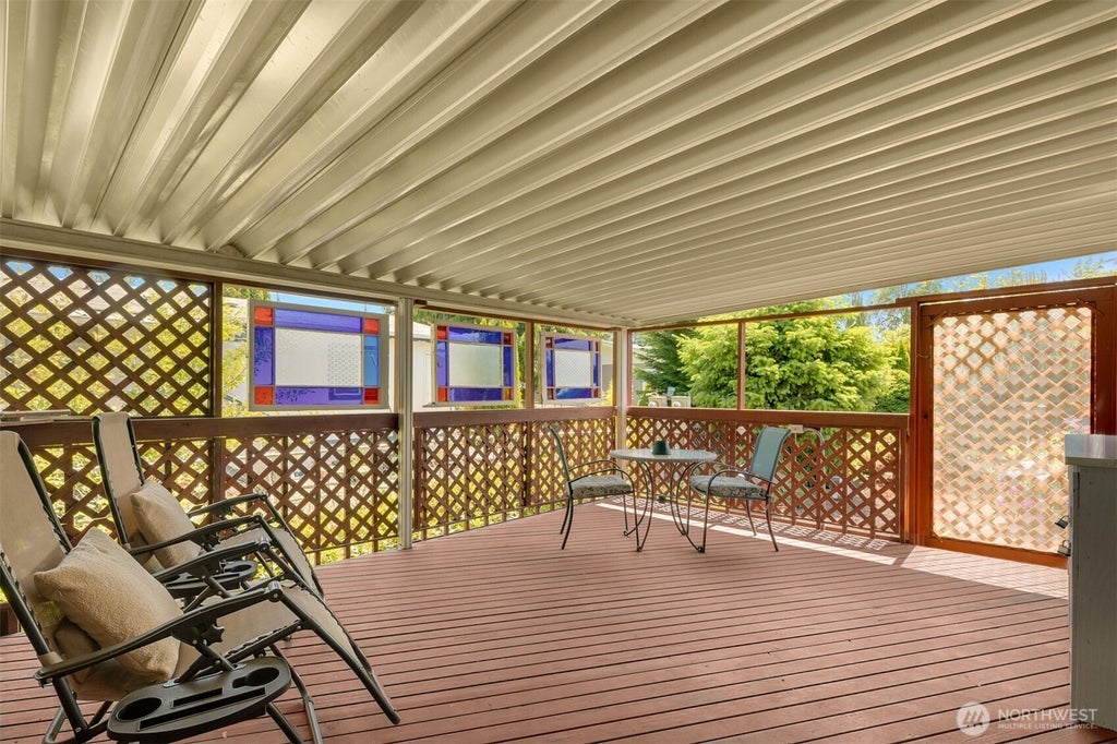 Step into effortless charm & comfort in this beautifully renovated home nestled in a peaceful 55+ community. Upon arrival, you'll feel right at home as you're welcomed by a spacious covered deck and easy-care backyard—ideal for summer dining & morning coffee w/ fresh-cut roses. Soaring cathedral ceilings, 6’10” doors, & an airy open floor plan fills the space with light & life. The split-bedroom layout offers a private primary ensuite, while the upgraded kitchen & baths bring a modern touch. Enjoy over $60K in thoughtful updates—new 40 yr roof, luxury vinyl plank flooring, quartz counters, modern LED lighting, electrical & more. Carport w/ storage & a dedicated laundry room complete the package. Move right in & start living the good life!