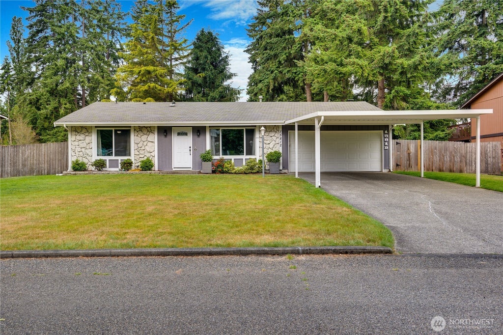 Well maintained and updated rambler on a beautifully landscaped lot, ready for summer fun! This 3 bedroom, 1.75 bath includes an office with a built-in Murphy bed and desk, spacious garage with shelving, and new, insulated 12’x16’ workshop with power. Relax in your central AC home with new paint, new carpet, and updated flooring. Main bedroom with walk-in closet and bathroom.Entertain company in the newly upgraded eat-in kitchen, or under the new 12’x14’ covered patio, rain or shine, while enjoying your fully fenced yard. This move-in ready home has plenty of parking - garage, street, and new 24’x18’ carport. Enjoy a quiet suburban oasis, with the convenience of shopping minutes away.