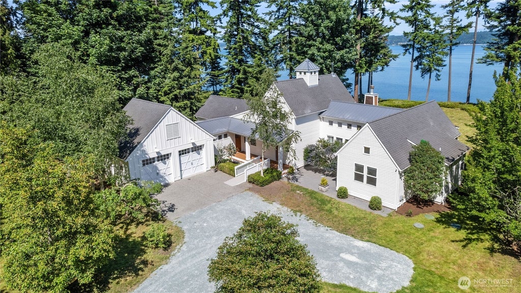 Wake up to soaring bald eagles, passing whales, & sweeping Puget Sound views—serenaded by birdsong. This modern farmhouse w/ contemporary design is a stunning custom home on 2+ private acres, thoughtfully planned for single-level living. Enjoy 2 beds, 2.5 baths, loft, library, mudroom, & utility room—all crafted with high-end finishes and timeless character, and each positioned to take in full water views. Chef’s kitchen features commercial-grade appliances, & 6 French doors seamlessly connect the interior to expansive outdoor living areas. 2-stall barn w/ shop offers flexibility for horses, hobbies, or extra storage. Privacy & custom craftsmanship throughout, this home captures the essence of island living with modern sophistication.