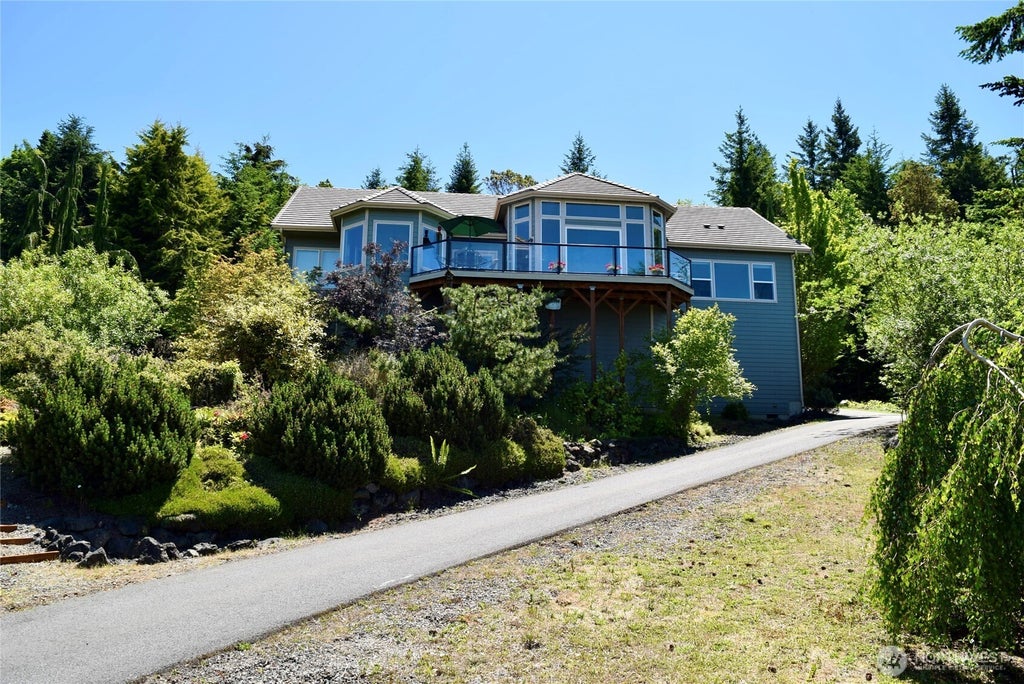Breathtaking 180 degree views from the Olympics across the Strait of Juan de Luca & the San Juan Islands from the living spaces & bedrooms of this fabulous home. Stunning high ceilings & extra large windows provide a feeling of luxury & openness. Kitchen has multiple eating areas with 2 bars and breakfast nook. There is a separate dining room & office. Primary bedroom has beautiful bath. Guest bedroom has attached bath & large walk-in. Bonus room is extra large for multiple uses. Garage is oversized. Beautiful pro landscaping with many plants, waterfall, fire circle area & more.