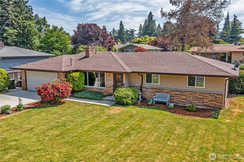 VERY WELL cared for one-owner RAMBLER on large lot near Lake Meridian! This lovely 3 bedroom home has fully updated bathrooms, one w/a walk-in shower w/glass doors, new carpet, new LVP flooring, roof was new in 2016, new windows & AC in 2023, & new furnace in 2020. Mid-century build with a great vintage kitchen! Two of the bedrooms with original hardwood flooring, beautiful hardwoods still under carpeted rooms! Large living room with real wood burning fireplace. Two car garage & big fully fenced yard with patio make this a GREAT home for summer entertaining! All appliances stay. Just minutes to Covington or East Hill shopping, this location is fantastic! No HOA. Backyard storage shed stays & room in driveway to park an RV! Super clean!!