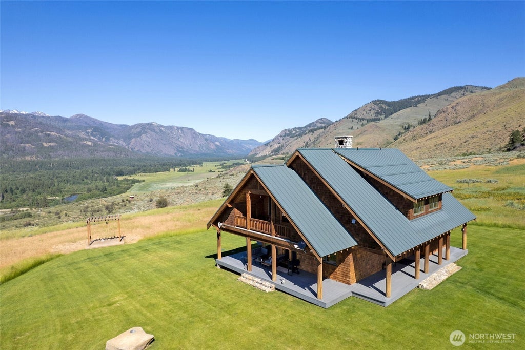 Spectacular craftsman-style home set on 57 acres, affording privacy and unmatched views of the Methow Valley. Located only 4 miles from downtown Winthrop, the lot has green lawns, natural shrub-steppe, and massive aspen trees that quake in summer and turn gold in fall. The bright and open floor plan includes wraparound windows that frame the incredible views of Sun Mountain and the North Cascades from dawn to dusk. High-end finishes have been meticulously maintained, including newly refinished oak floors. All mechanical components have been recently replaced, and the home features a new heat pump, ventilation system, and 32kw generator. Has a 3-car garage with shop. This is Methow Valley living at its finest, just minutes from town.