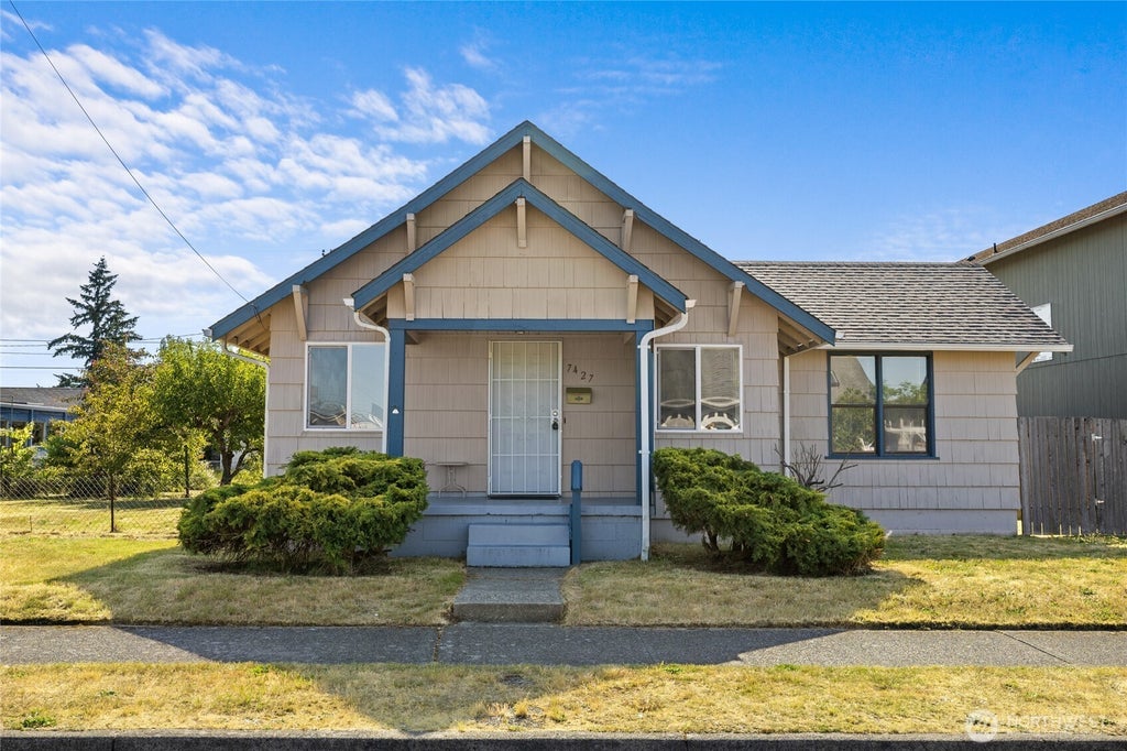 Welcome to this clean 2 bedroom home in S Tacoma. The living room in the front of the home creates a nice separation between the two bedrooms. There is a full bathroom by the larger bedroom, and a 3/4 bathroom is located in the laundry room at the back of the home. The home has double pane vinyl windows, and the roof is in good shape. The basement has a low ceiling and houses the electric water heater as well as the gas furnace. There is a one car garage with additional shop space accessed off the alley and the large double lot has many mature fruit trees. The location is convenient to shopping, schools, public transportation, I-5, and JBLM.