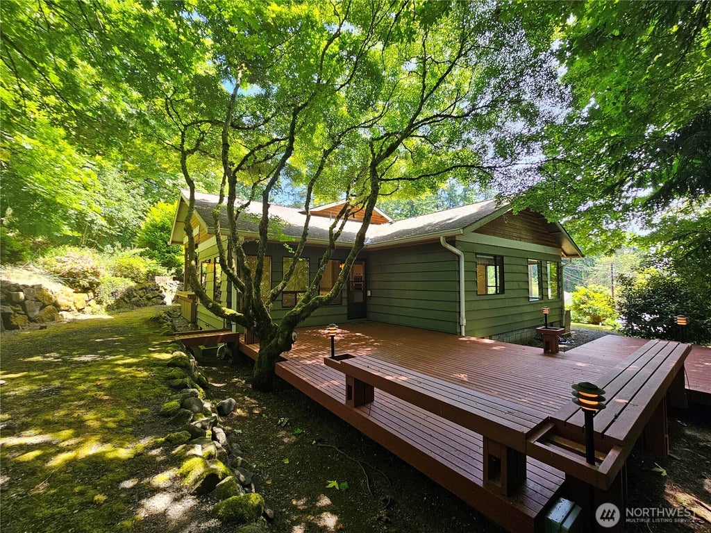Discover this inviting Edgewood gem, privately set with custom touches throughout. Enjoy a sunlit living room and beautifully updated kitchen featuring quartz counters, cork flooring, and stainless appliances. The spacious primary suite offers a walk-in closet, luxurious bath with heated floors, built-in infrared sauna, and private deck. Expansive finished basement/rec room provides endless possibilities. Detached 20'x30' shop includes built-in dust collection system. Garage boasts built-in cabinetry and sink—perfect for hobbies. Two-level deck ideal for summer entertaining. Ample parking with 3 driveways. Close to Edgewood Community Park, Sounder train, and freeways.