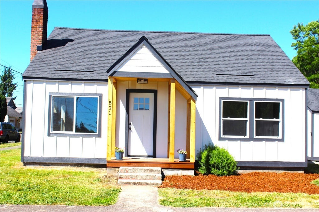 So much of this 1920s era home has been refreshed, updated and upgraded. Newly redone is the roof, siding, insulated vinyl windows, flooring, electric panel, HVAC system, kitchen and bath. Cute corner lot home is now energy efficient and modernized. Decor' Quartz countertops, soft-close cabinets, tiled shower, vinyl plank laminate flooring, and ductless heat pump with AC. Matte black plumbing fixtures and stainless steel appliances. Features of this hm competes with new but at much lower pricetag. Good little garage/workshop for hobby's and storage. Convenient location for dining and shopping. Walk to downtown restaurants and shopping. Enjoy the vintage brick streets of quaint and historic downtown Centralia. Broker is related to seller.