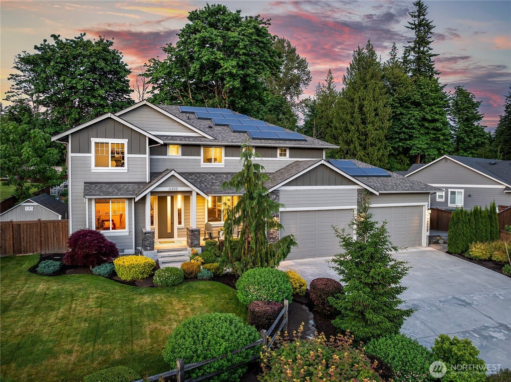 Craving serenity without sacrificing modern comforts? This stunning residence is sited in a private gated community, offering a perfect blend of thoughtful luxury, functional design & exceptional outdoor living + lots of upgrades and a swoonworthy 4-car garage! Soak up summer in the backyard oasis featuring $180K in outdoor design - covered patio, hardscaping, gas fireplace, greenhouse, solar panels & power wall. The gorgeous kitchen includes a butler’s pantry, wet bar/coffee station & office nook, open to the living room with beautiful built-ins & gas fireplace. A formal dining, ½ bath & office complete the main floor. Four generous beds up, including the sumptuous Primary suite. Don’t miss the scenic community trails & waterfront access.