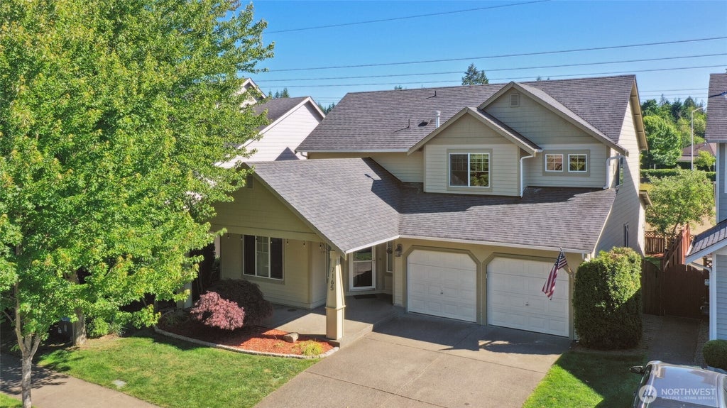 Wonderful 4 Bedroom Horizon Pointe home featuring 2,224 Sq ft of living space sited on a very desirable lot! This home checks all the boxes with a functional floor plan, including two living spaces, dining room, and a spacious laundry room with sink and counter space. Home also features central A/C to keep you cool, sprinkler system, and fresh interior paint throughout. Relax in your spacious primary suite with 5 piece bath and soaking tub. Outside you'll enjoy delicious cherries from your own cherry tree, raspberries, strawberries, and even blueberries. This lot backs up to the neighborhood green space, providing added privacy while outdoors. Close to all amenities and a short commute to JBLM. This home is move in ready!