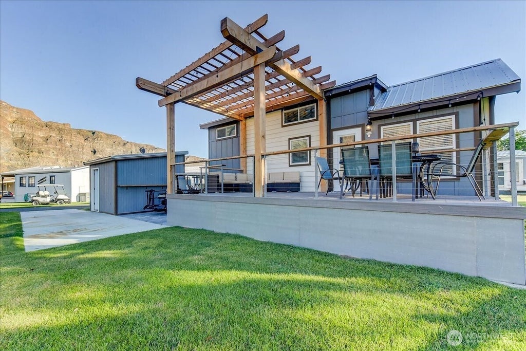 This stylish NEW park model in coveted South Park with an expansive view of the golf course has 1 bed, 1 bath, living area, large sleeping loft, designer kitchen and vaulted ceiling. Ductless mini-splits in both living room and bedroom. A new Trex deck and large beam pagoda that can be enclosed, as well as a shed with bunk-beds, and slate golf cart parking. One golf cart stays with property. HOA dues include water, sewer, garbage, electric and lawn maintenance. Community golf course, swimming pool with hot tub, marina with parking, boating, river trails and much more!