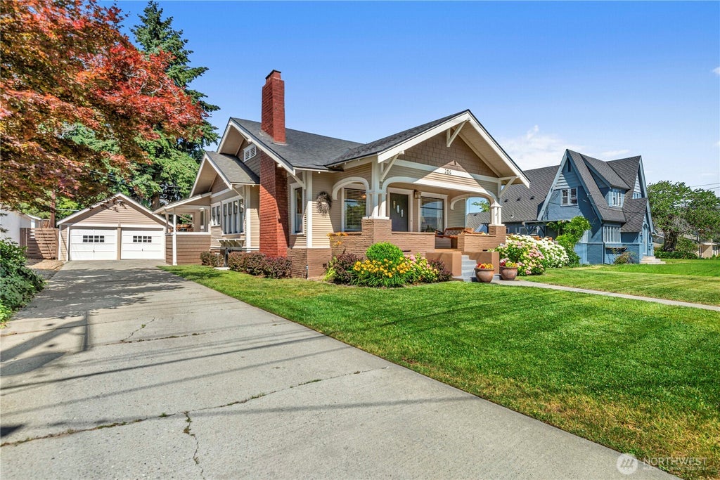 Fall in love with this beautifully reimagined Craftsman in the heart of Wenatchee. From the inviting oversized front porch to the warm glow of new hardwood floors, every detail feels like home. The open-concept main floor offers a high-end kitchen, two bedrooms, a spa-like bath, and a sunlit bonus room. The fully finished lower level—with private entrance, two bedrooms, sleek second kitchen, and heated-floor bath—is perfect for guests or rental potential. Enjoy peace of mind with a roof under 5 years old, brand new HVAC, and updated plumbing and wiring that has been brought to today's standards. Outside, a fenced yard with raised garden beds, space for a pool, and a finished shop off the detached garage complete the dream.