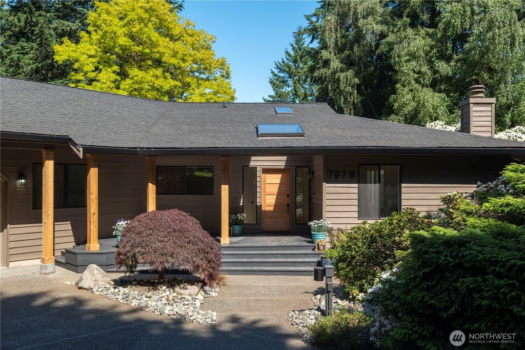 Upscale newly refurbished mid century modern architectural gem in Meadowmeer neighborhood ! Captivating indoor outdoor connections to rear deck for entertaining which overlooks a fully landscaped yard with extensive gardens. The home features an open concept main level floor plan with vaulted ceilings. Location is walking distance to BI Health club, the Grand Forest, and golf. The primary bedroom has a stunning 5 pc en suite bath.The main level offers lots of flexibility with second bedroom /office configuration. The lower level daylight walk out, contains a media room, game room, hobby room, an office, and two bedrooms along with another full bathroom and utility room. An oversize 2 car garage with workshop space is another bonus