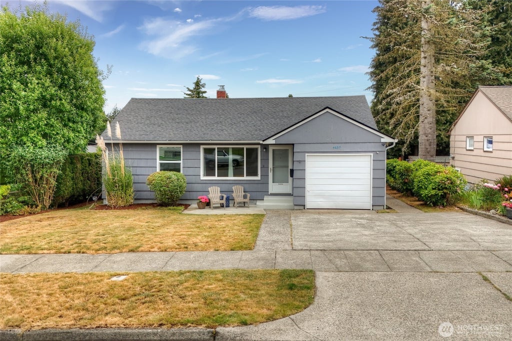 Updated rambler w/shop in North Tacoma has the perfect blend of modern updates w/classic charm! 2 bedrooms, 1 bath on the main level w/bonus room above garage that could act as 3rd bdrm if needed. Fully refurbished hardwoods throughout, new hardwoods in kitchen & dining area to match. Coved ceiling in the large living room is one of the features you notice when entering the home. Fully remodeled bathroom w/tile shower, new vanity w/stone counters, & slate tile floors. Updates include Brand new roof, Newer heat pump, new electrical & panel, plumbing was all replaced, fresh Milgard windows, new interior/exterior paint including fence stain, & all new insulation in house. ½ mile away from Point Defiance & .7 miles away from Point Ruston.
