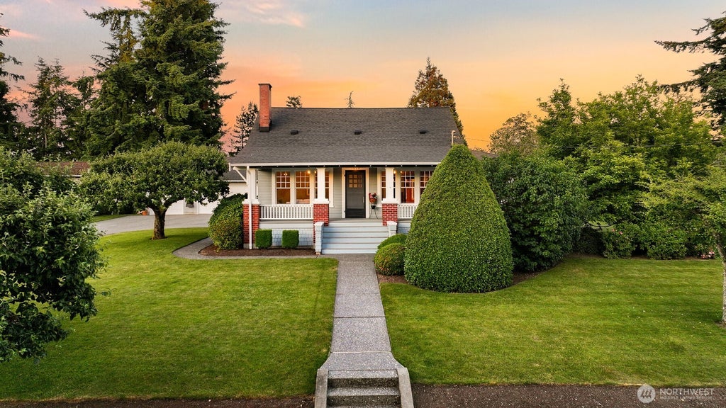 Nestled on a private one-acre lot near Galbraith Mountain, Whatcom Falls, and Bloedel Donovan Park, this beautiful Craftsman home is a truly special property. Original Craftsman features include fir floors, tall ceilings, wood crown molding, and built-ins with leaded glass. Picture windows flood the kitchen with light and offer views of the park-like yard. Enjoy a wraparound porch, spacious patio, hot tub, and vibrant gardens—perfect for relaxing or entertaining. An oversized 3-car detached shop adds incredible functionality. Two bedrooms and a full bath are on the main level, with two more bedrooms, another full bath, and additional living space upstairs. Updated plumbing and electrical complete this meticulously cared for home.
