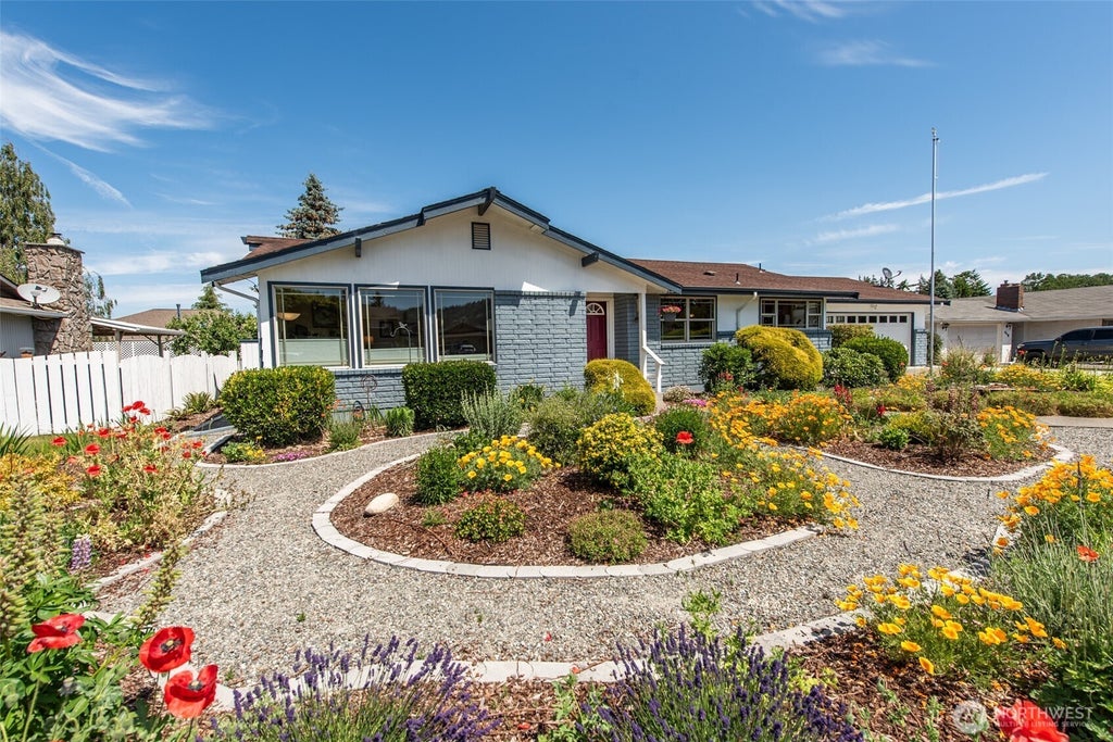 Beautifully maintained and updated home in a quiet neighborhood yet near downtown amenities. Walk one block to the ODT or sit back and enjoy the south-facing view of the Olympic Mountains from your own living room! Amazing chef's kitchen featuring custom cabinets and new granite countertops is a show-stopper. Enter the backyard gardener's oasis from the spacious dining room or from the primary bedroom suite! Second bedroom comes with a murphy bed, allowing for multiple uses. Landscaped, fenced yard has a covered patio, gazebo, modern greenhouse and drip irrigation. 2-car garage has space for a workshop and the large driveway leaves room for an extra vehicle/RV. New Carrier heat pump and hybrid water-heater installed in 2022. Welcome home!